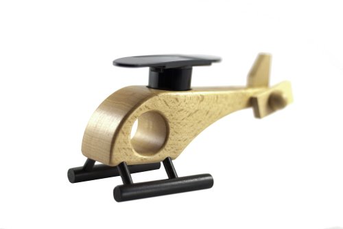 - Wooden helicopter with solar panel blade