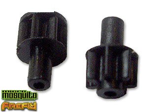 This is a set of two replacement Motor Pinions for Firefly & Micro Mosquito RC Helicopters. These small gears press onto the motor shafts of the two main motors, and each meshes with one of the large main gears.